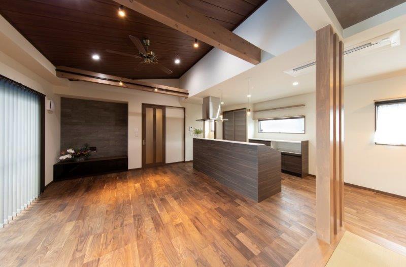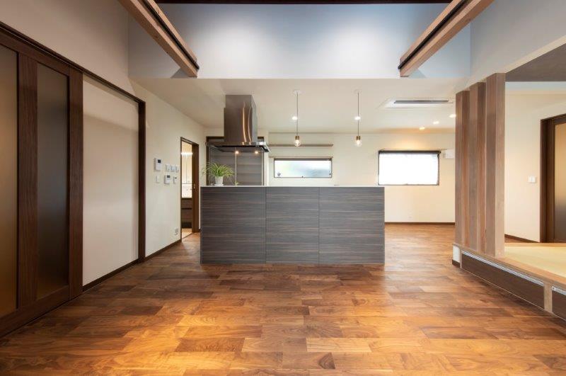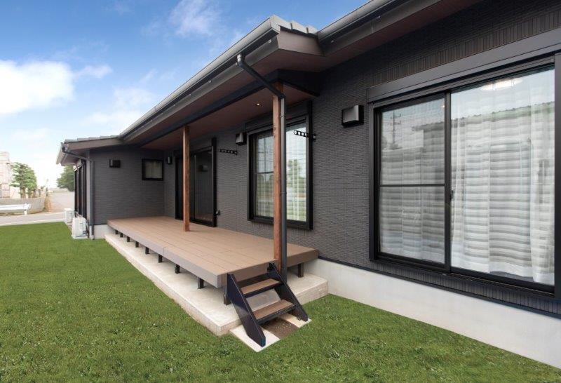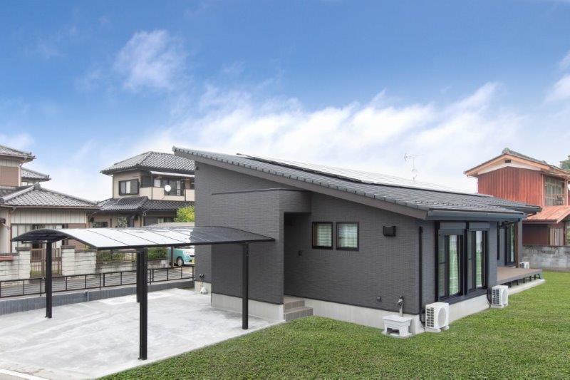 ZEH(ゼロエネルギー住宅)仕様の平屋建ての住宅が完成しました 外壁はタイル張り 内部も無垢フローリング仕様